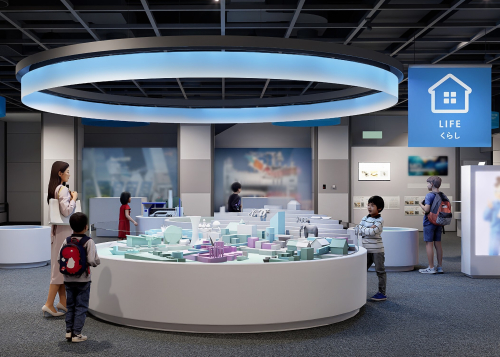 くらしを支えるさまざまな産業を都市模型として表現。産業とくらしのつながりが目に見える形に。